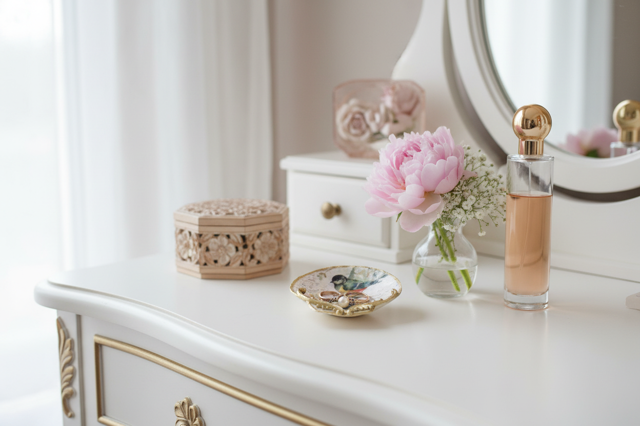 Compact size perfect for nightstands, vanities, or bathroom counters