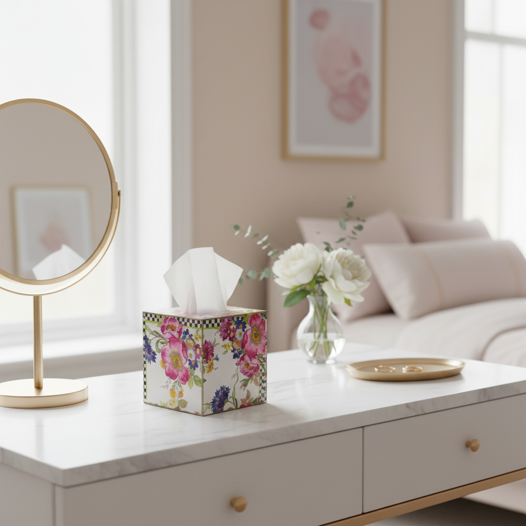 Dimensions: 5¾" × 5½" (fits standard tissue boxes)