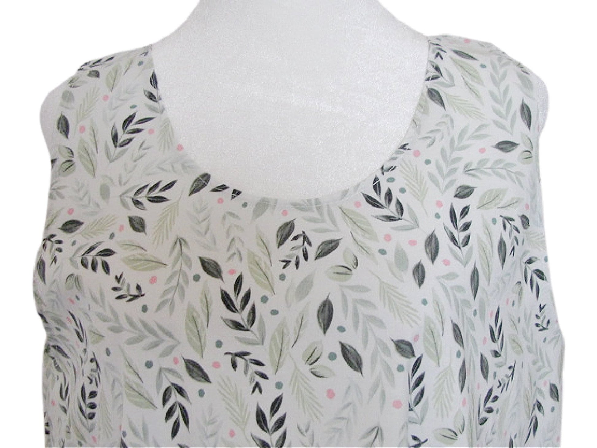 Handmade Cotton Slip Dress - Ruffled Hemline, Leaf Print (Small-Medium)